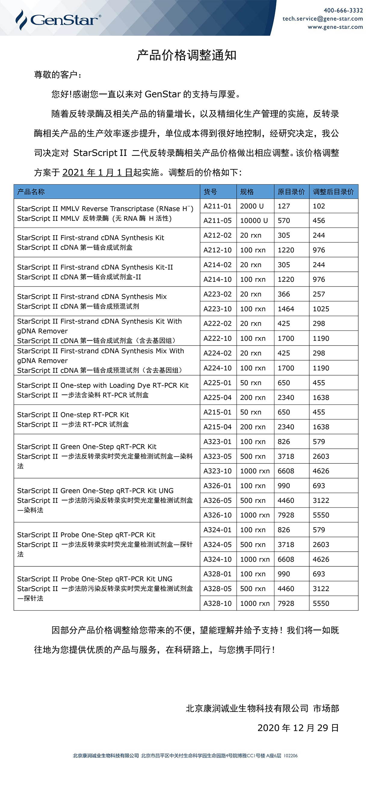 qPCR耗材相關(guān)產(chǎn)品價格調(diào)整