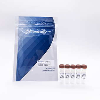 本產(chǎn)品是采用 SYBR Green I 嵌合熒光法進(jìn)行實(shí)時(shí)熒光定量 PCR 的專用 2× 濃度預(yù)混液。產(chǎn)品含有優(yōu)化濃度的 GenStar Power HSTaq DNA Polymerase、SYBR Green I、dNTPs、Mg2+、反應(yīng)緩沖液和穩(wěn)定劑等成分。主要用于基因組 DNA 靶序列和 RNA 反轉(zhuǎn)錄后 cDNA 靶序列的檢測(cè)。Power HSTaq DNA Polymerase 在 75℃ 以下溫度沒有活性,從而有效避免在常溫條件下由引物和模板非特異性結(jié)合或引物二聚體而產(chǎn)生的非特異性擴(kuò)增,酶的激活需要 95℃ 孵育10 min。反應(yīng)體系可在室溫下配制,無(wú)需在冰上完成,操作方便。優(yōu)化濃度的 SYBR Green I 熒光染料,特異性地?fù)饺?nbsp;DNA 雙鏈后,熒光信號(hào)增強(qiáng),而不摻入鏈中 SYBR Green I 染料分子熒光信號(hào)不變,從而保證熒光信號(hào)的增加與 PCR 產(chǎn)物的增加完全同步,熒光可以在退火或延伸階段測(cè)定。